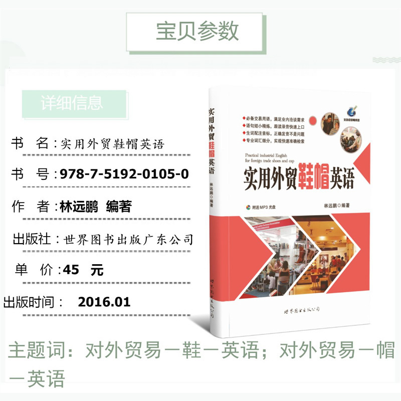 帽英语 世界图书出版 附音频 外贸商务档口交易英语句型对话口语会话基础入门实用英语口语教材 公司 林远鹏编著 实用外贸鞋