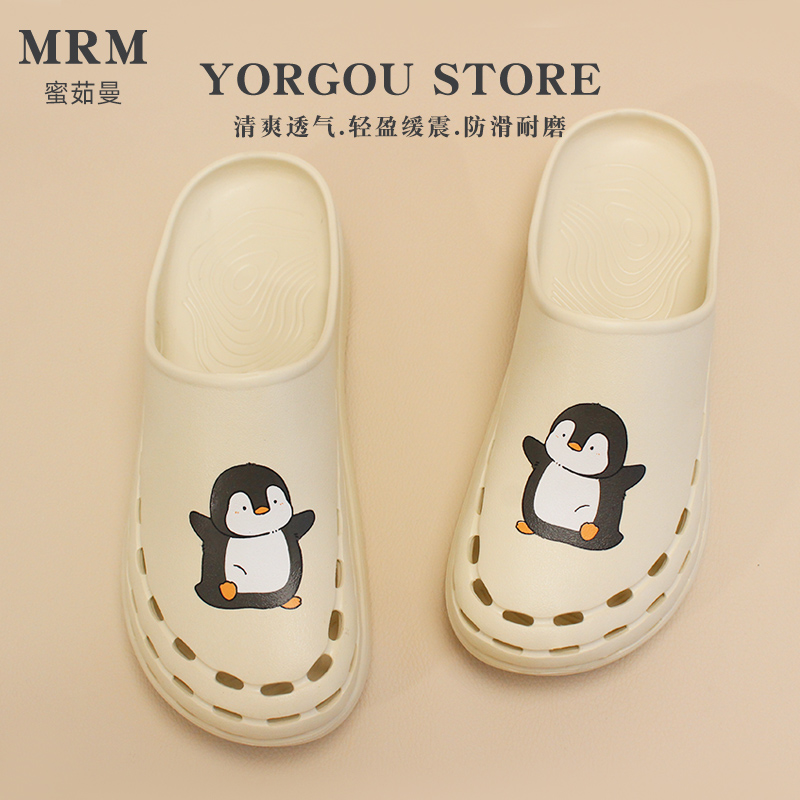 女款 包头海边半拖鞋 外穿夏季 厚底凉拖防滑沙滩鞋 女 2025新款 洞洞鞋