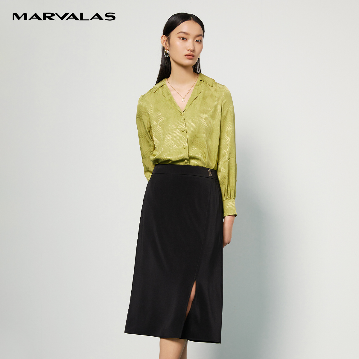 女垂感贴身长袖 曼德诗绿色西装 领衬衫