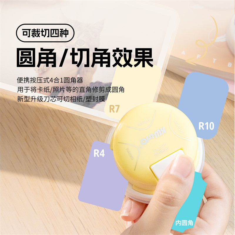 可得优全新多功能圆角四合一切割器倒角器r多功能切角手动直角圆边小卡器打孔器diy切割器切角