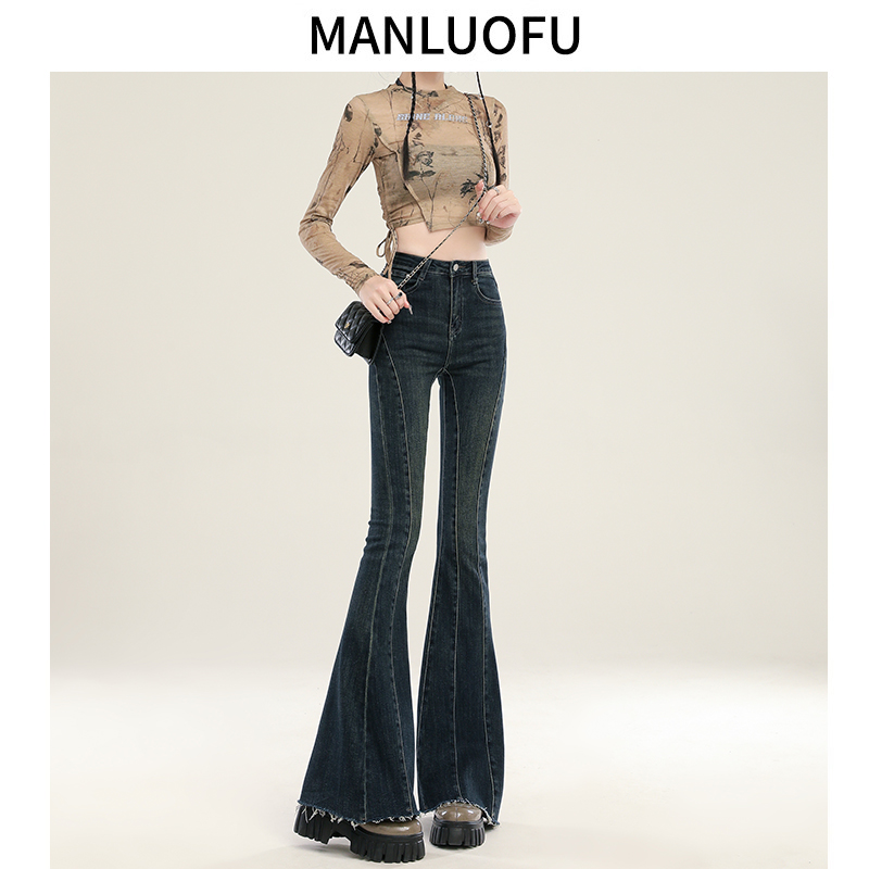 弹力小个子马蹄拖地裤 美式 2025高腰修身 女春秋装 复古微喇牛仔裤