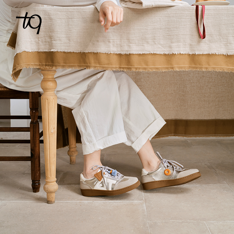 女款 休闲运动鞋 2025秋季 棕色内增高设计感小众时尚 新款 人本德训鞋