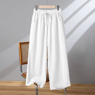 大码 高腰垂感九分裤 太极裤 直筒休闲裤 妈妈阔腿裤 女薄款 女禅服夏季