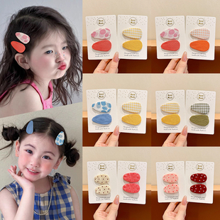 儿童全包布格纹发夹女童多巴胺碎发bb夹小女孩不伤发刘海侧边夹子
