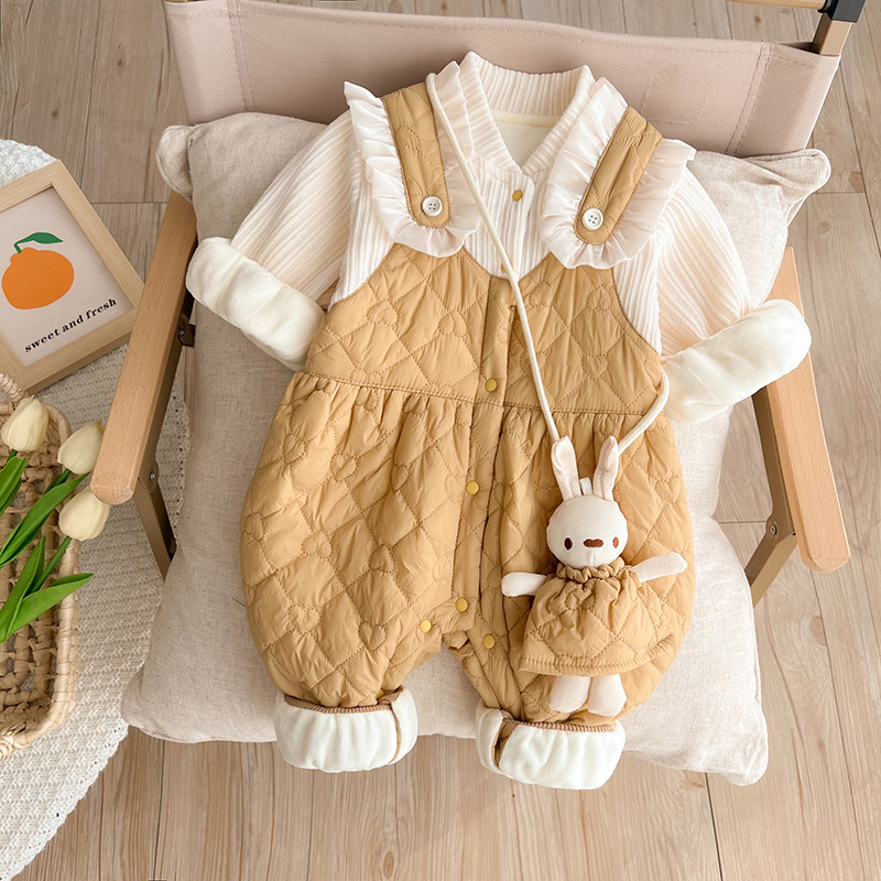 柏艺 超萌新生婴儿衣服秋冬加绒加棉女宝宝连体衣可爱公主外出抱