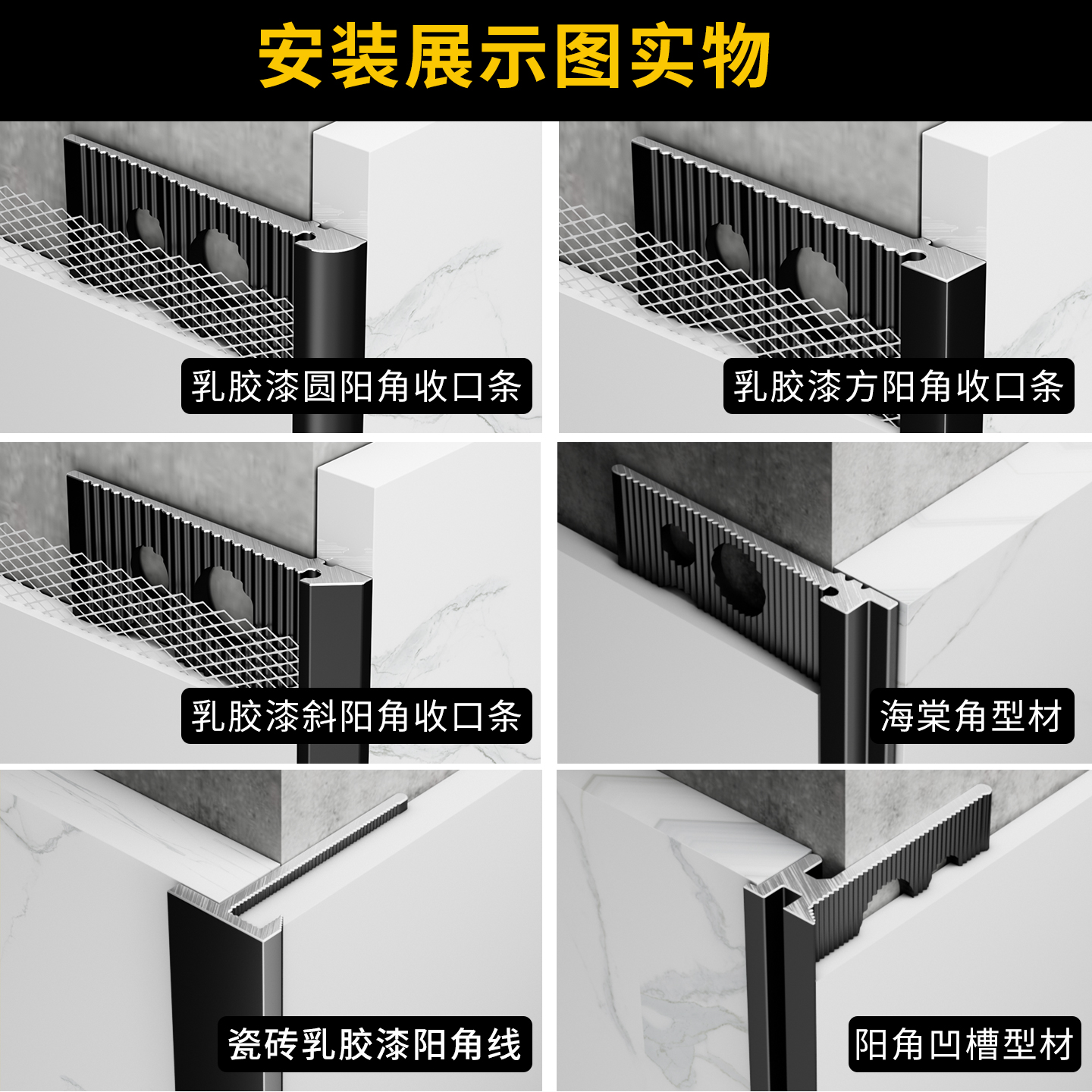 墙面瓷砖与乳胶漆收口条转角收口铝型材批灰预埋阳角线极窄收边条