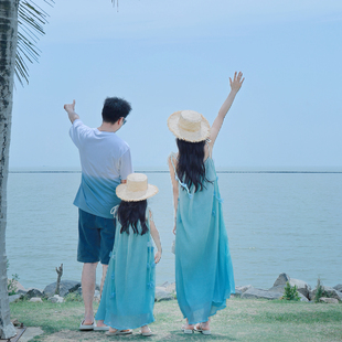 母女立体花渐变超仙连衣裙潮 新款 海边度假一家三四口亲子套装 夏季