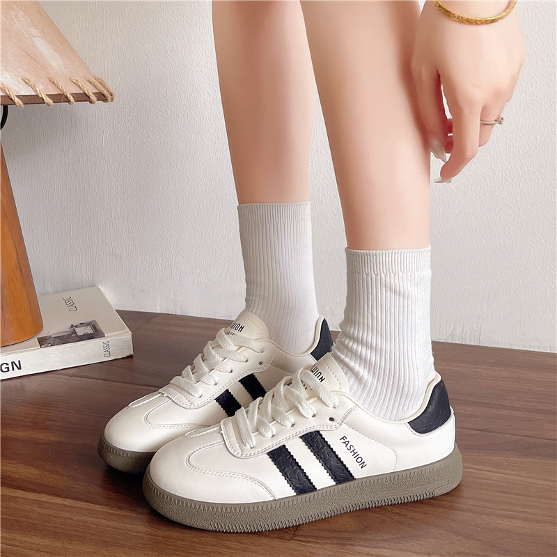 设计感爆休闲运动板鞋 新款 女生百搭春秋平厚底2025夏季 德训小白鞋
