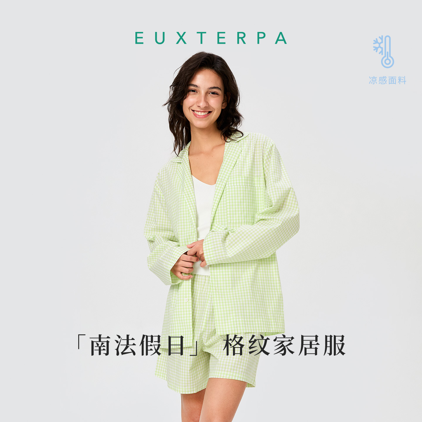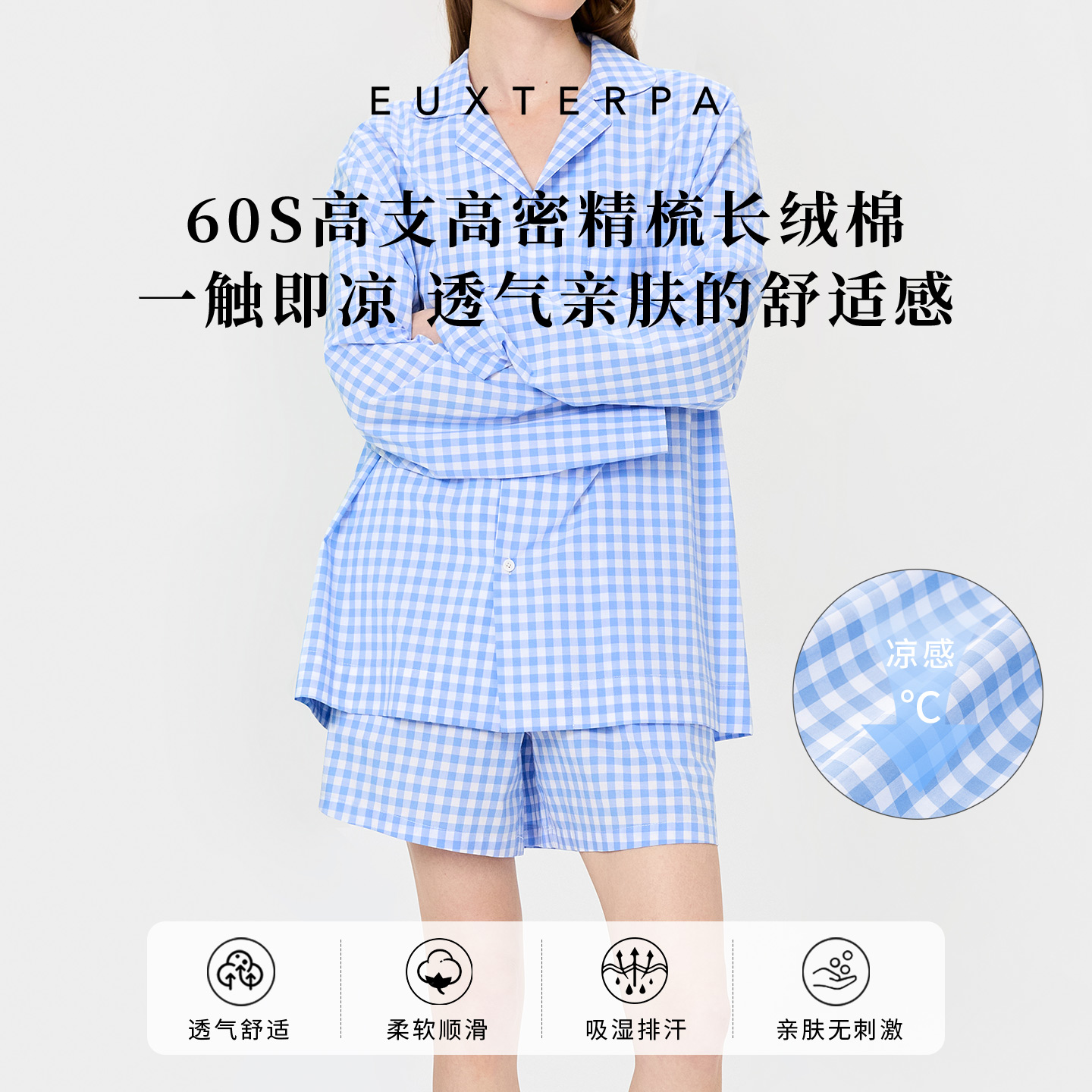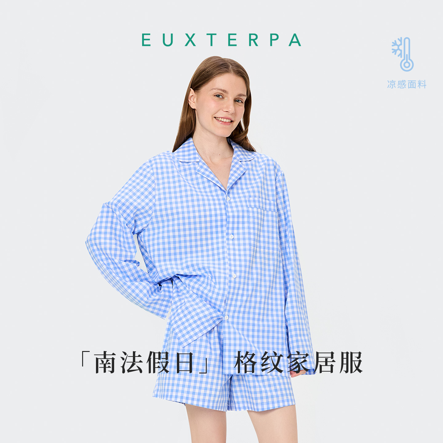 舒适休闲服情侣 女室内法式 EUXTERPA欧特帕秋季 格纹家居服睡衣套装