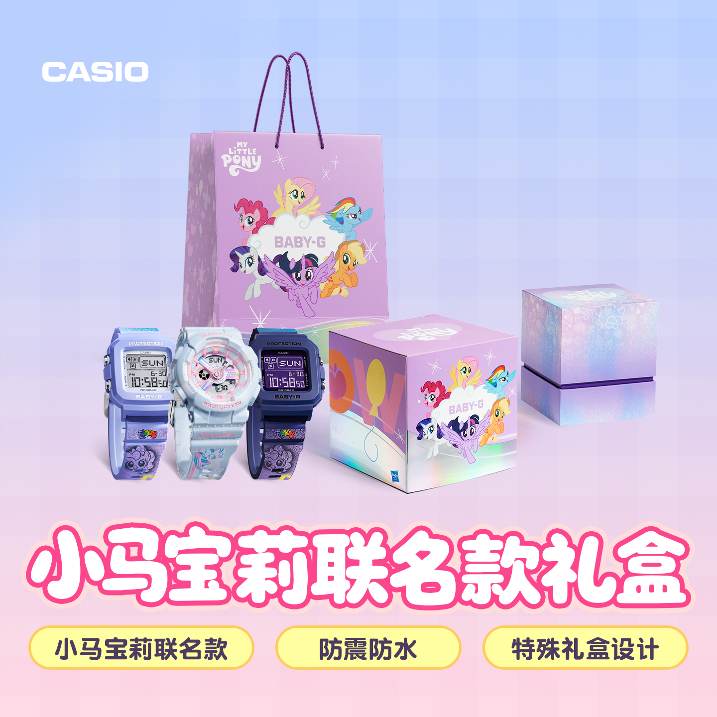 10K小马宝莉联名礼盒少女手表女BABY BGD 110FH 卡西欧旗舰店BA