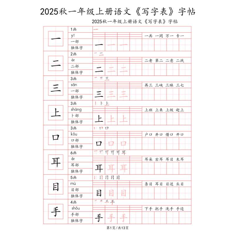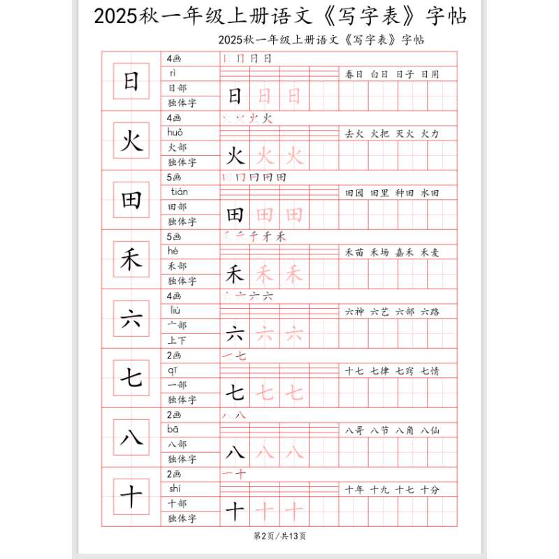 2025秋最新 暑假每日 一年级上册课本同步写字表字贴小学语文生字同步练习拼音笔画组词结构练字贴一二三四五六年级练字帖BO款