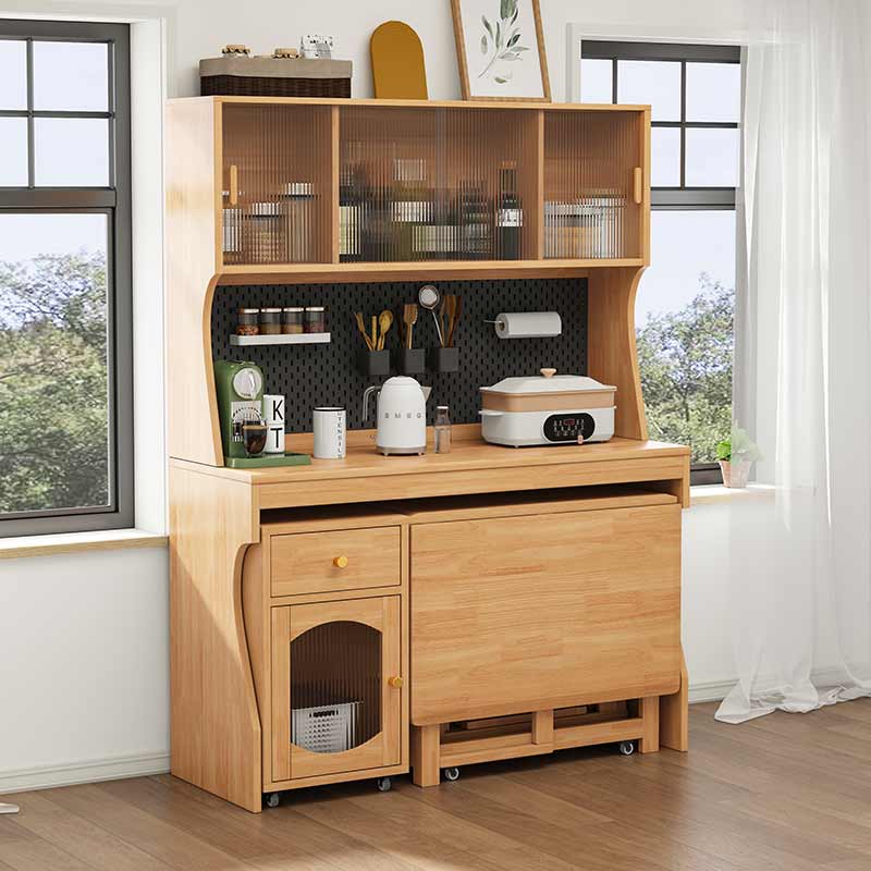 蓝色理想中古风实木餐桌椅组合家用客厅可折叠圆餐桌餐边柜小户型