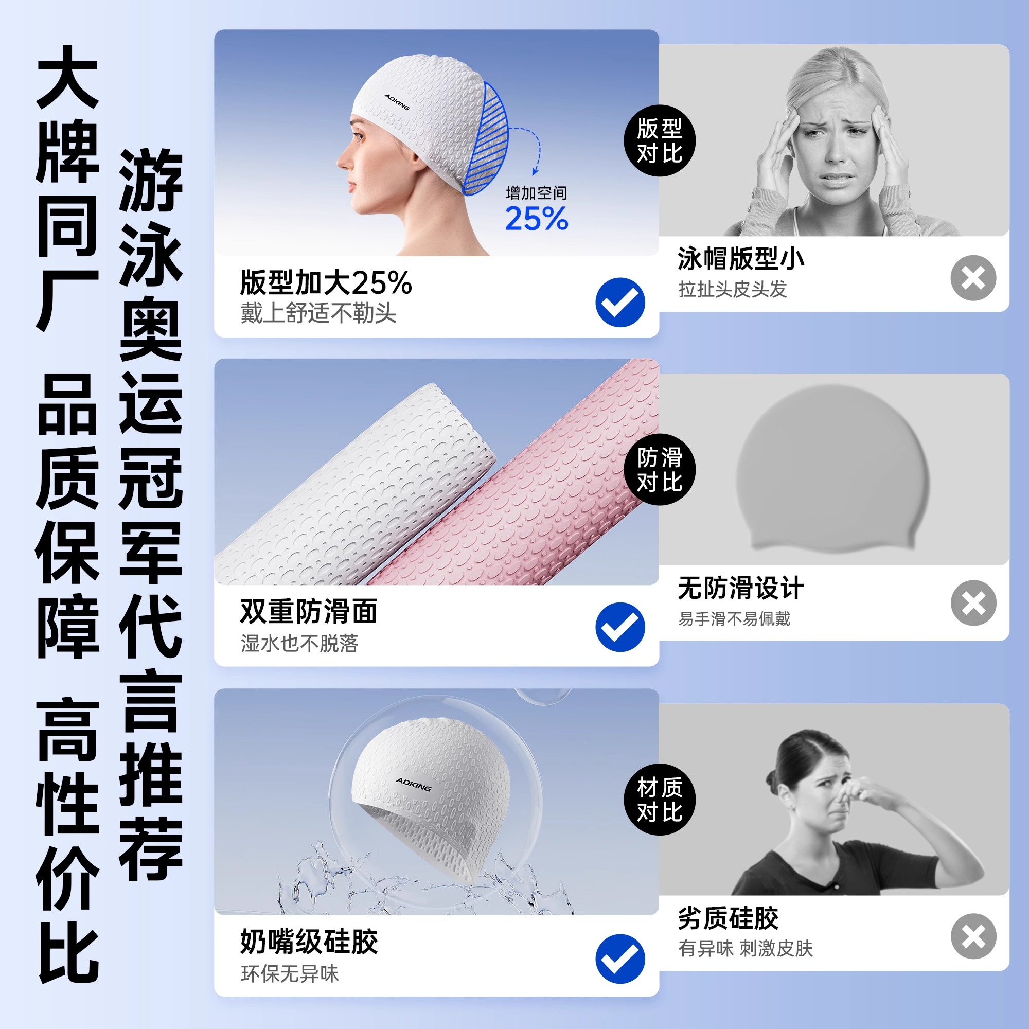 泳帽女不勒头长发加大高颜值游泳帽男款 成人大头围专用防水硅胶帽