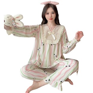 长裤 可爱卡通长袖 宽松甜美胖mm家居服 云朵棉睡衣女春秋季 跨境大码