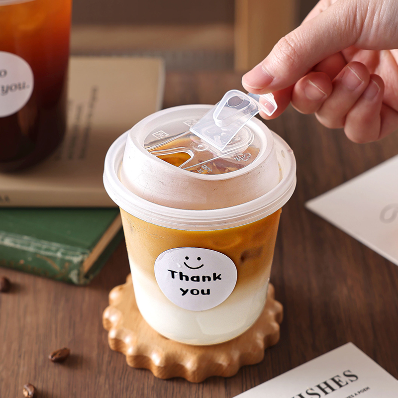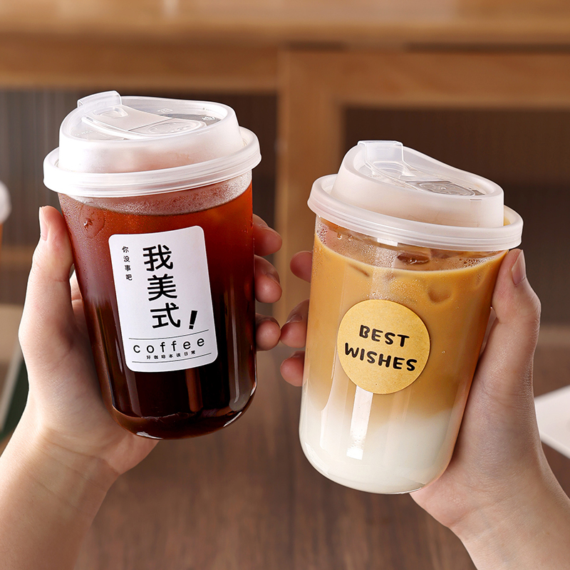 一次性咖啡杯奶茶杯子带盖塑料透明饮料杯家用加厚密封外出携带