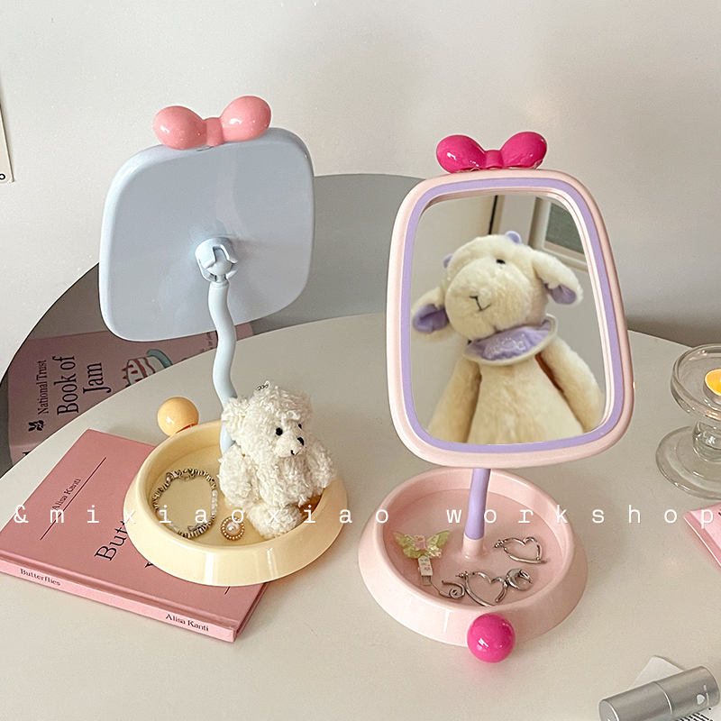 奶油风化妆镜家用办公室学生宿舍高清高颜值工位桌面台式 镜子可立