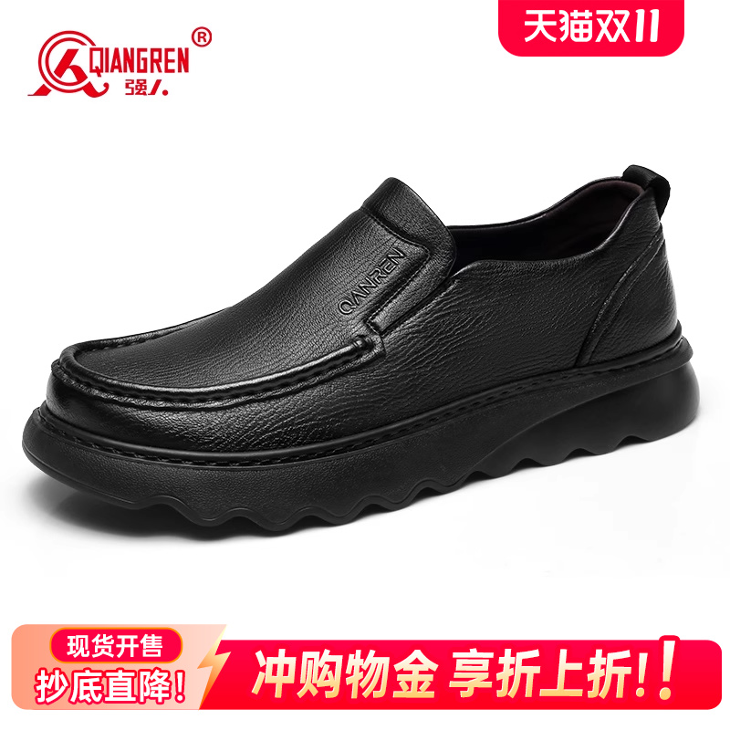 头层牛皮一脚蹬厚底商务休闲中老年爸爸男鞋 老人头皮鞋 男真皮秋季