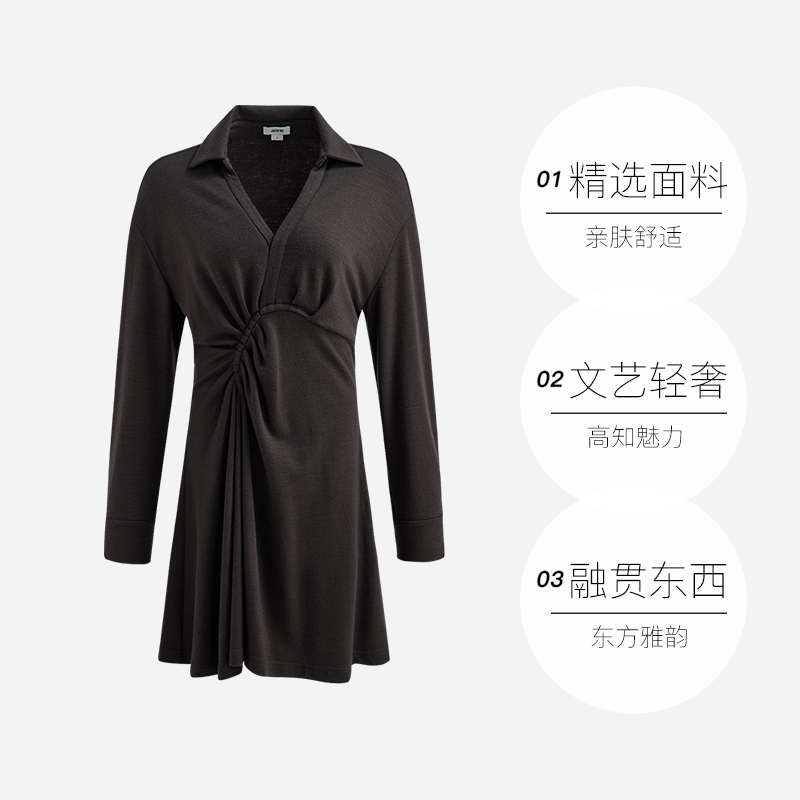 设计感收腰衬衫 黑色长裙高级感气质法式 连衣裙 新款 朗姿2025年秋季