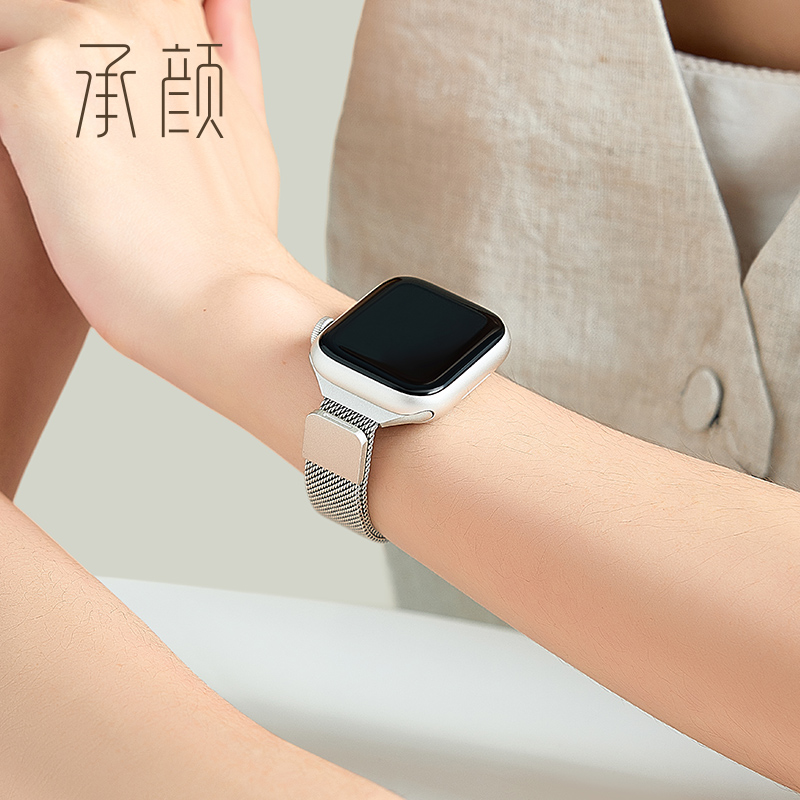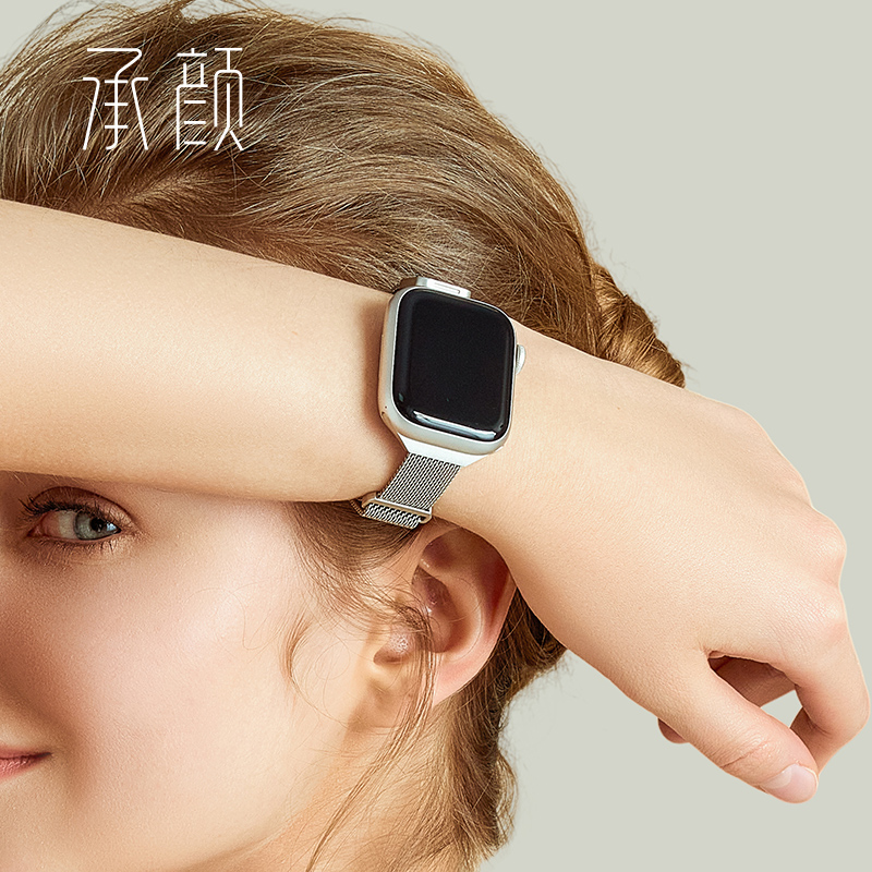 小手围iwatchS9表带显瘦表带 小蛮腰applewatch磁吸S10女表带时尚 承颜适用于苹果手表S11新款 官方米兰尼斯细款