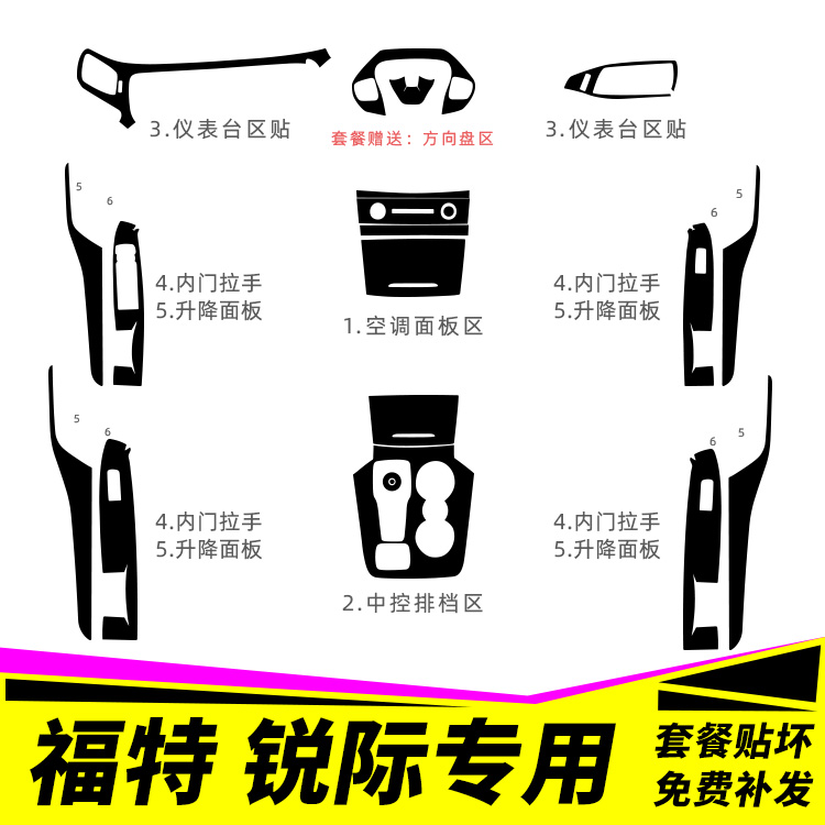 饰保护贴膜 专用碳纤维贴纸中控排档装 适用于20款 福特锐际内饰改装