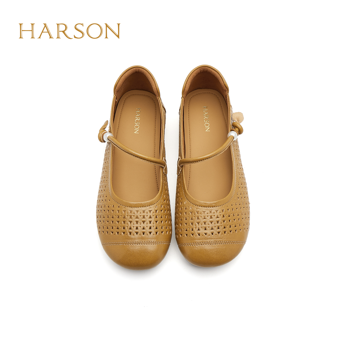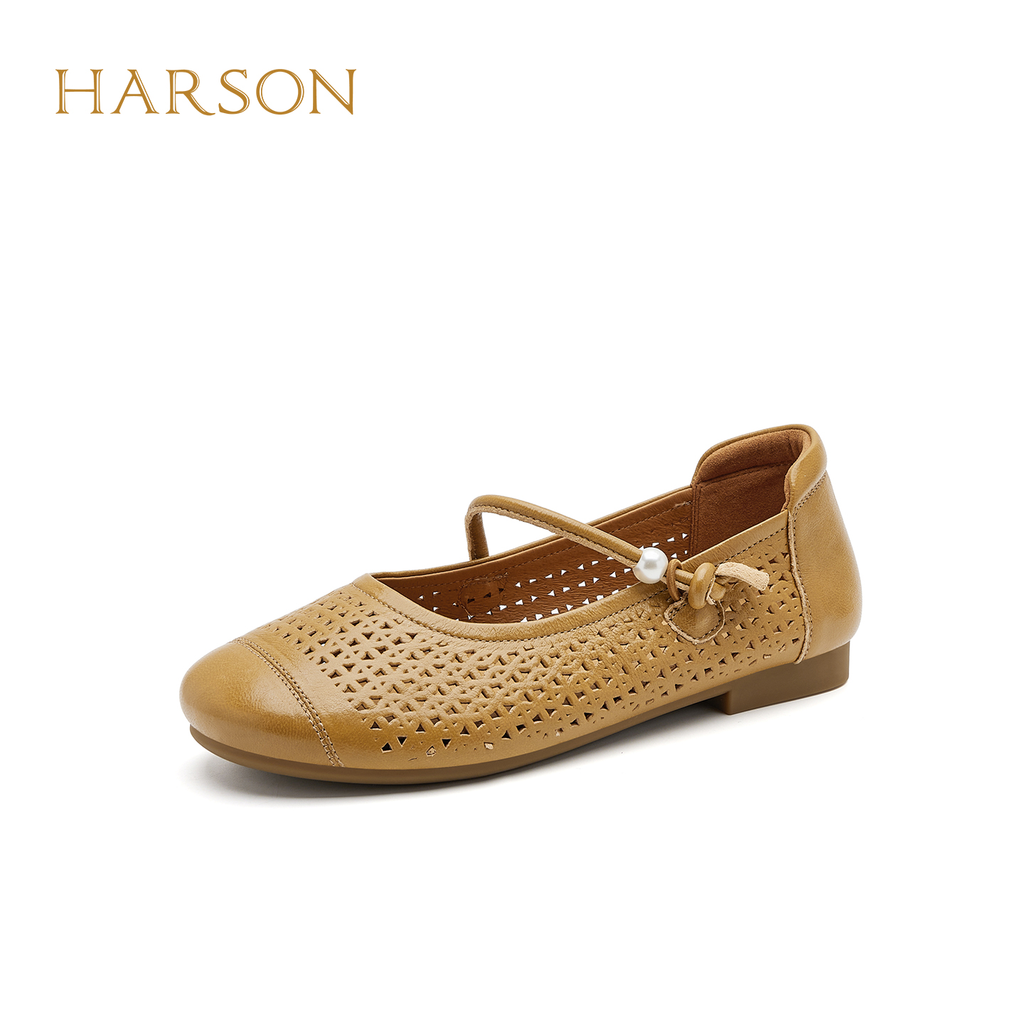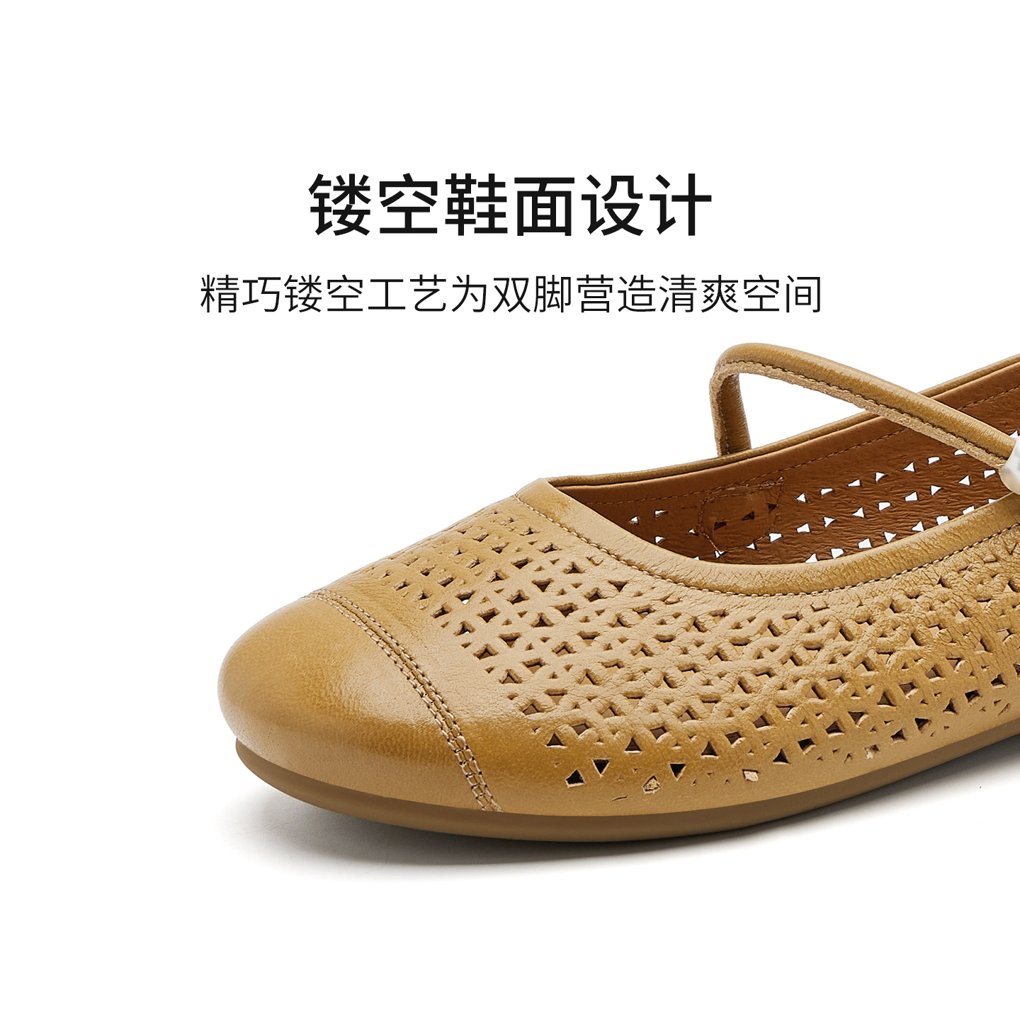哈森纯色舒适镂空透气平底一字带玛丽珍女单鞋 HWL250109 2025秋季