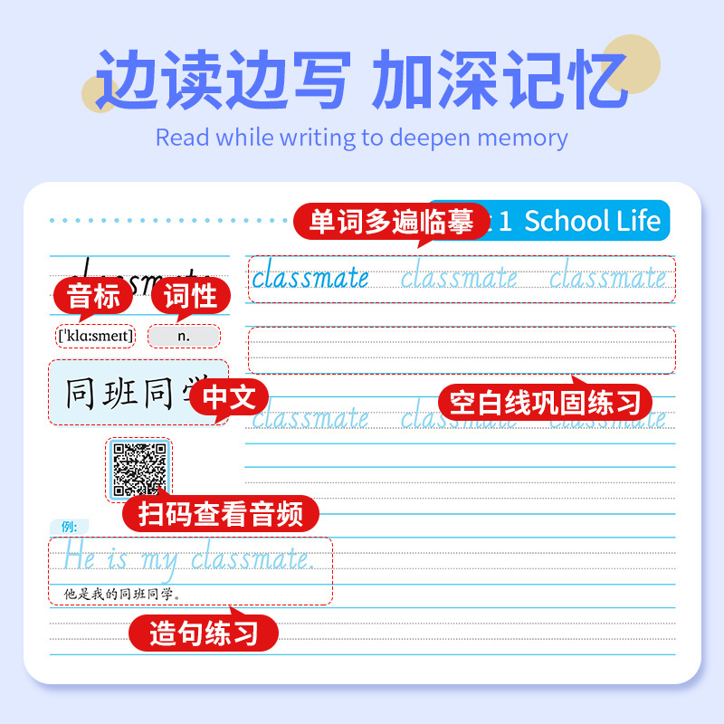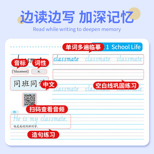 三起点学生教材训练 新版 小学鲁科版 五四制英语字帖三四五年级上册课本英文单词句子同步练习描红本学生写字手写体意大利斜体2025版