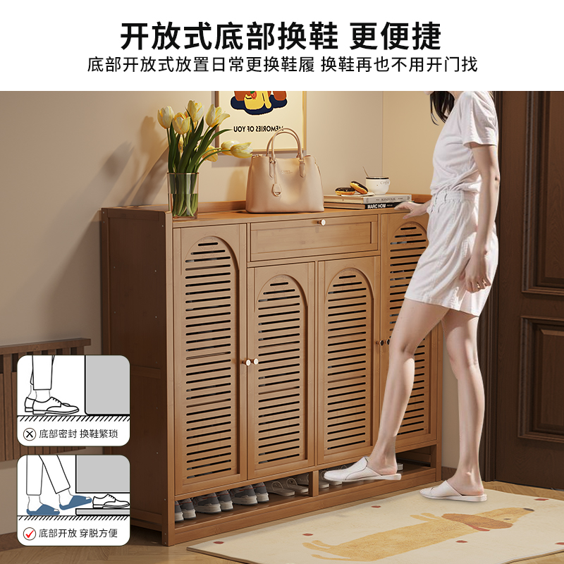 家用门口入户鞋 柜收纳一体靠墙 架中古风带门简易多层置物架小窄鞋