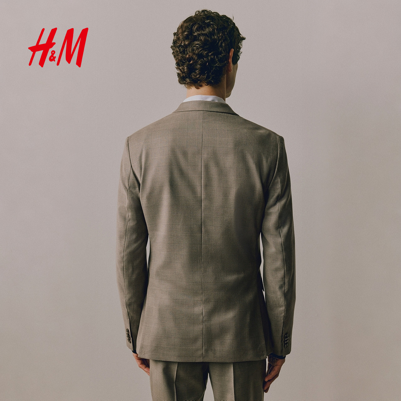 HLA 商务通勤外套男 海澜之家绒感弹力休闲西服平驳领胸针点缀修身