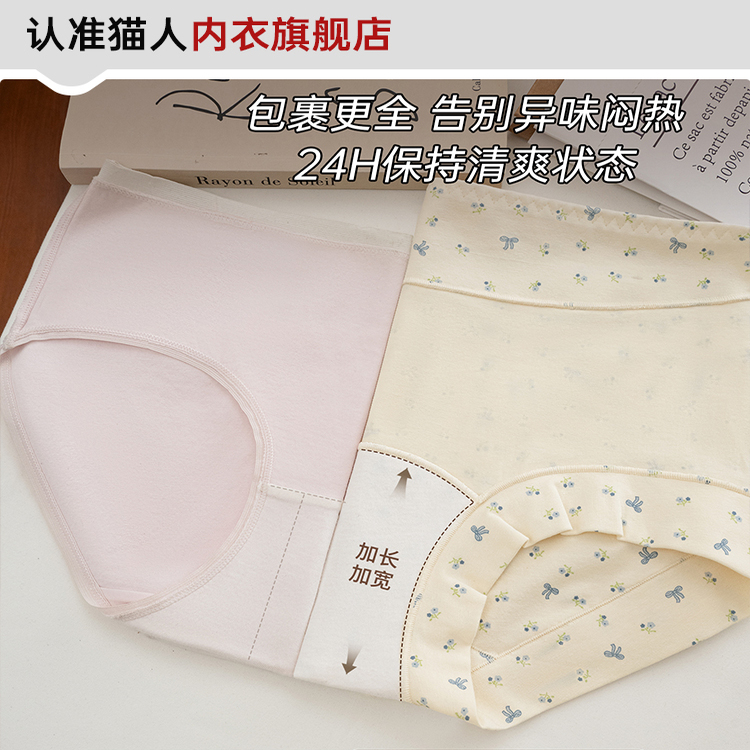 女款 猫人内裤 三角裤 高腰收腹全棉裆抗菌妈妈大码 女士纯棉2025新款