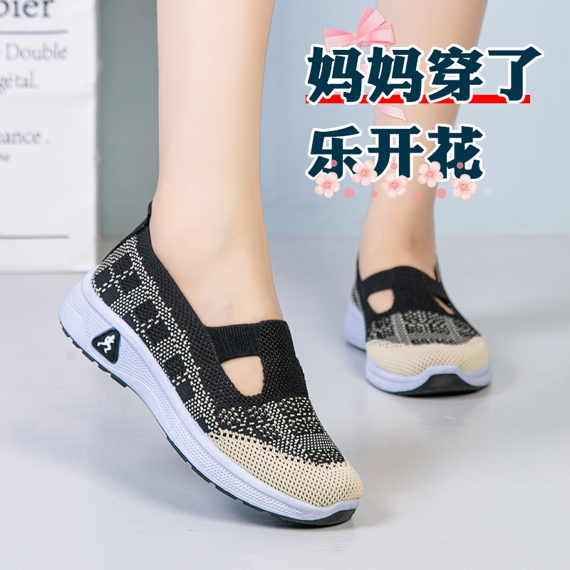透气飞织妈妈鞋 夏季 凉鞋 老人健步鞋 洞洞鞋 女款 2025新款 老北京布鞋