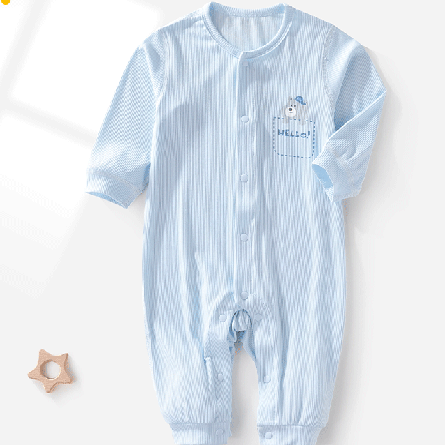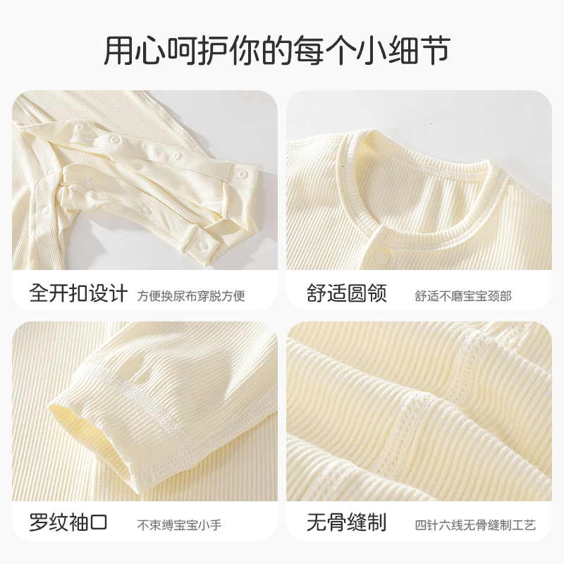 童泰婴儿衣服连体衣夏秋薄款 闭裆无骨睡衣宝宝哈衣空调服 透气长袖