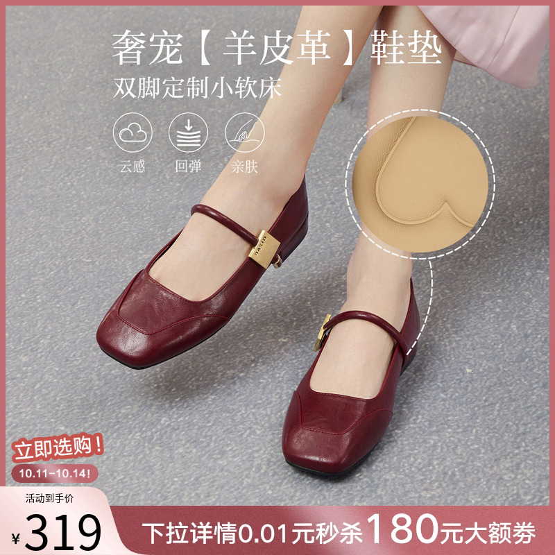 浅口女单鞋 小皮鞋 F3501CQ5 舒适软底红色玛丽珍鞋 百思图2025秋新款