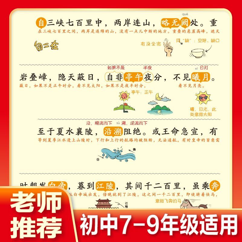 初中必背文言文漫画笔记初中必背七八九年级人教版 中考文学常识文言文提前学背初一二三初中必背古诗词漫画笔记70篇直通中考szhm