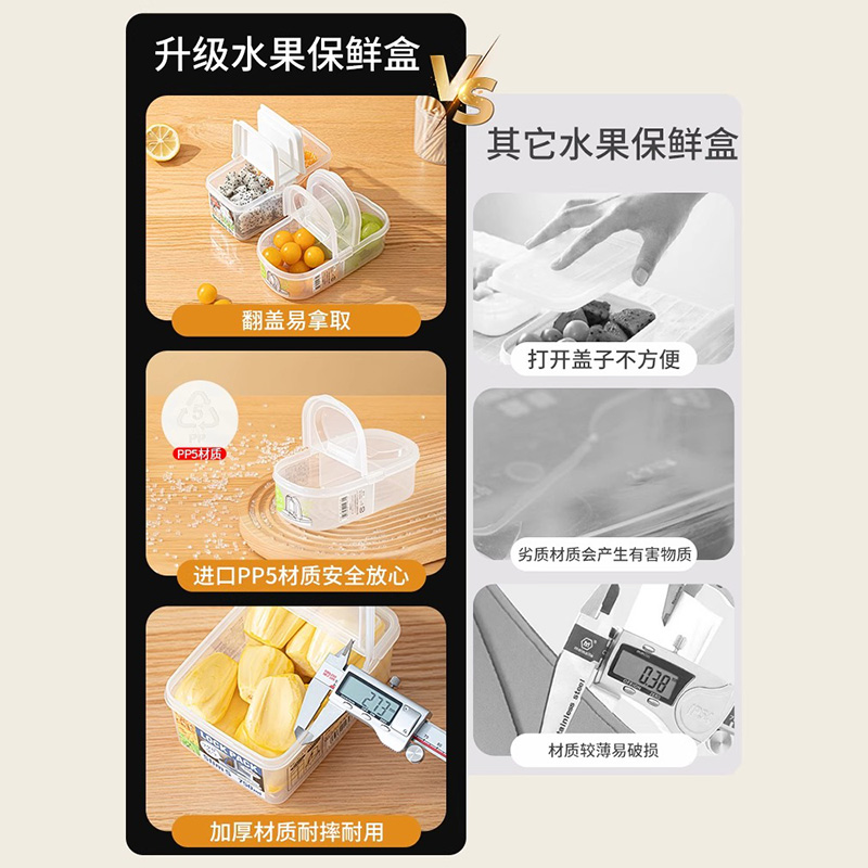 家之物语便携水果便当盒小学生带食品级外带盒翻盖保鲜盒冰箱密封