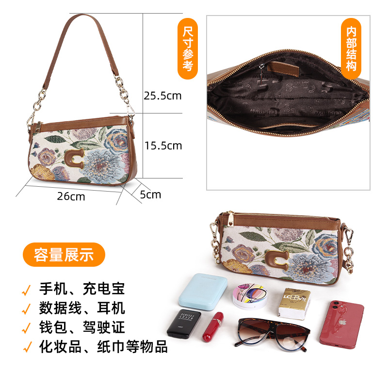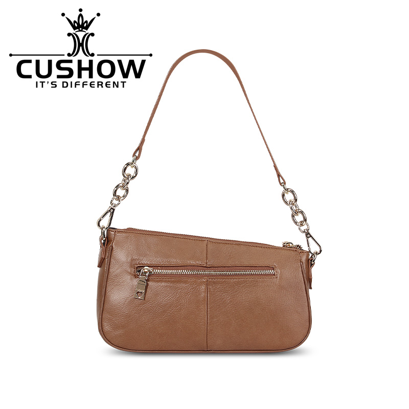 卡秀头层牛皮链条斜挎单肩包2025新款 小巧轻便真皮女包三用多背法