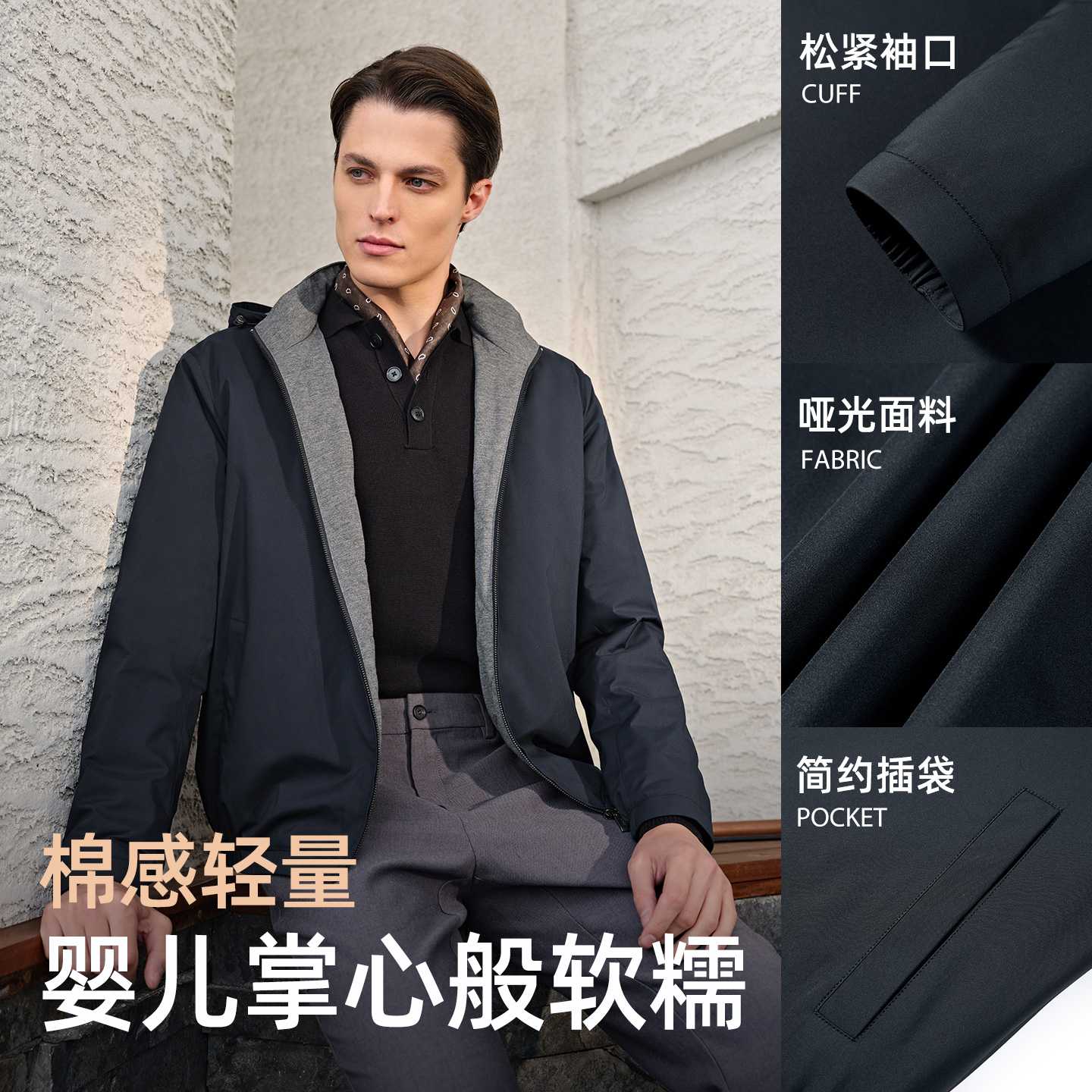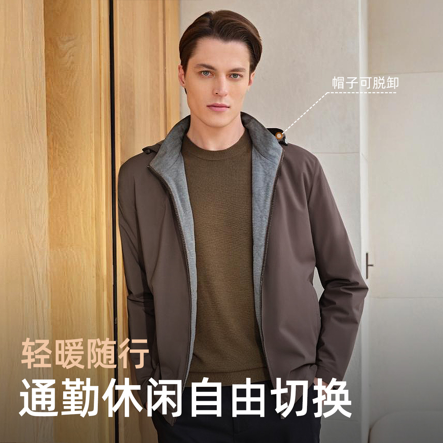 雅戈尔官方25年秋季 商务休闲通勤透气立领带帽棉茄克上衣外套 新款