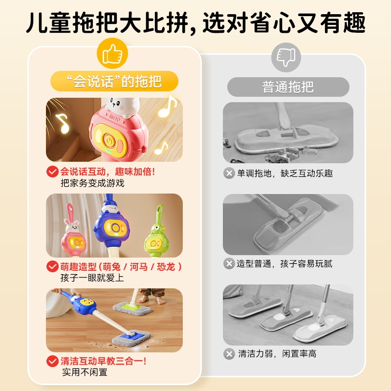 儿童玩具女孩拖把宝宝消耗体力早教益智3到6岁男孩实用过家家礼物