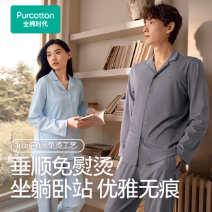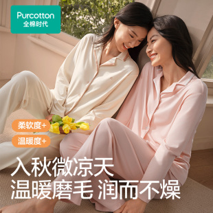 全棉时代睡衣男女士水光棉磨毛家居服长袖 睡衣秋情侣睡衣纯棉睡衣