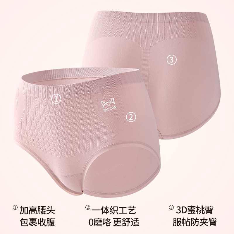 猫人高腰内裤 不卡裆D 女收腹提臀纯棉抑菌吸湿排汗透气无痕三角裤