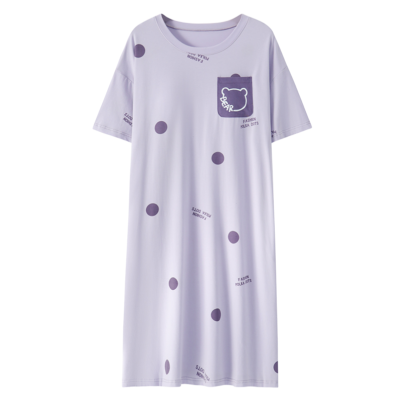 可爱睡衣家居服全棉女款 芬腾睡裙女士夏季 纯棉大码 短袖 连衣裙 薄款