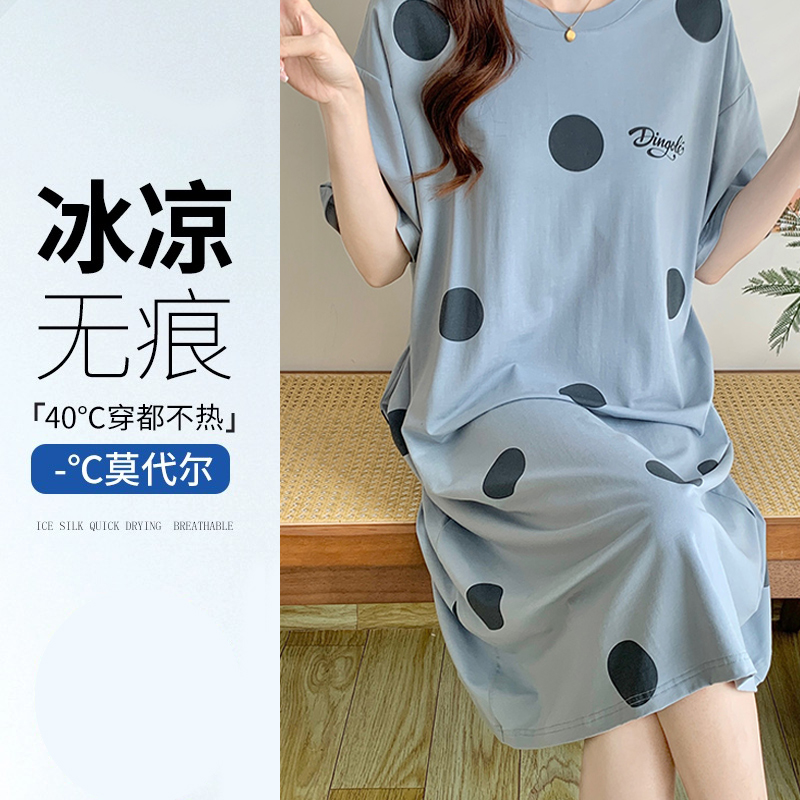 短袖 新款 裙子绵绸加大码 棉绸睡衣睡裙夏天2024年春秋季 人造棉 薄款