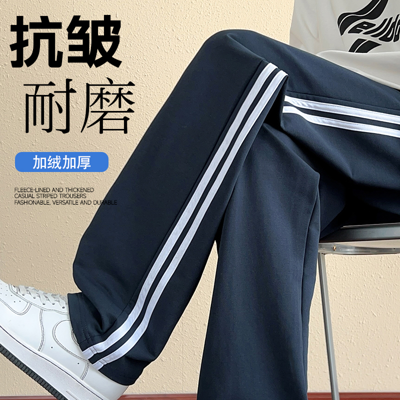 系带松紧宽松百搭休闲裤 鸭鸭羊毛蚕丝保暖卫裤 男士 新款 2025秋季