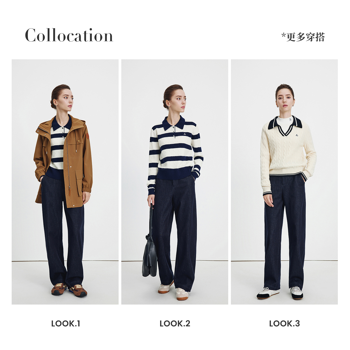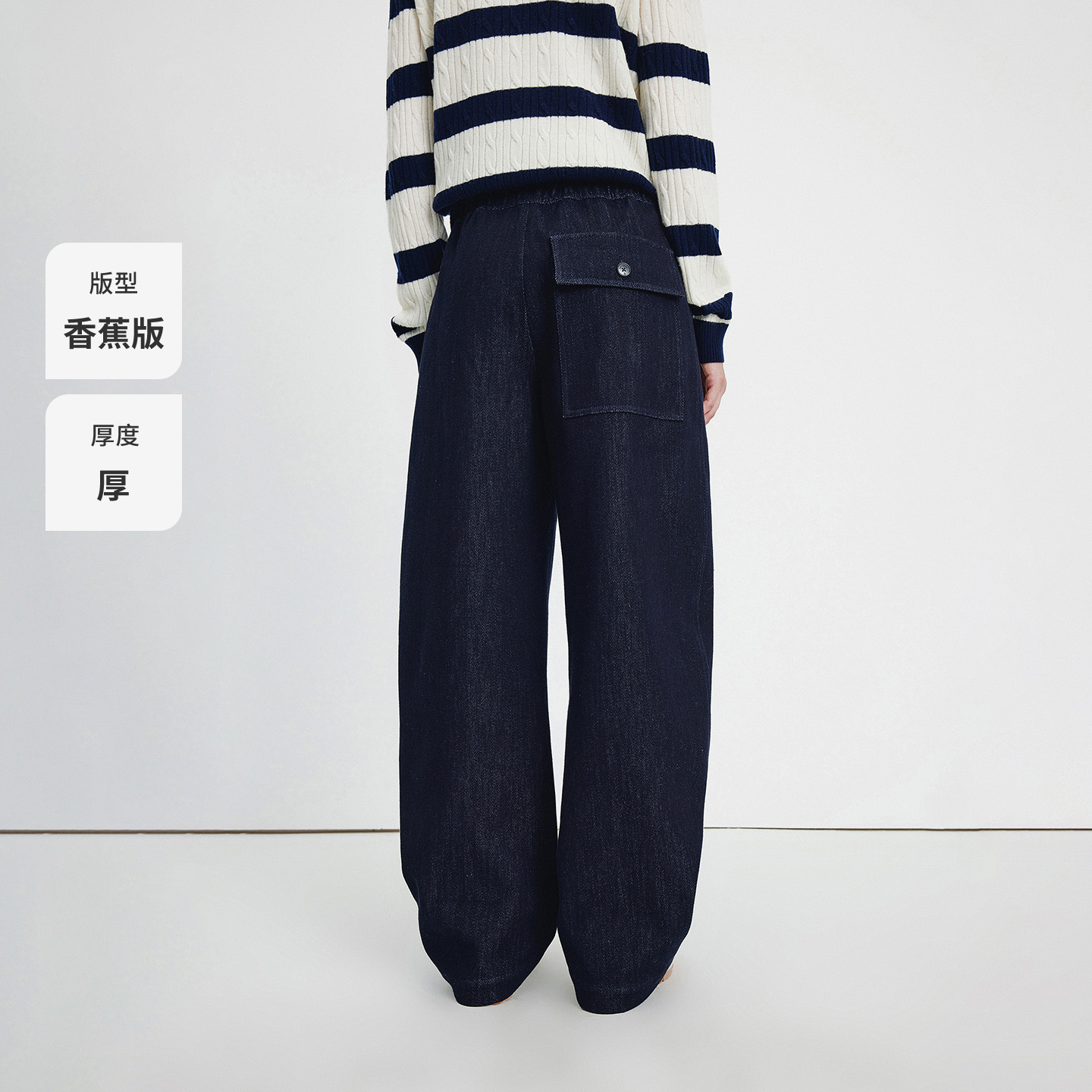 Navigare意大利小帆船松紧腰休闲牛仔裤 女磨毛加厚保暖弯刀香蕉裤