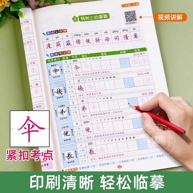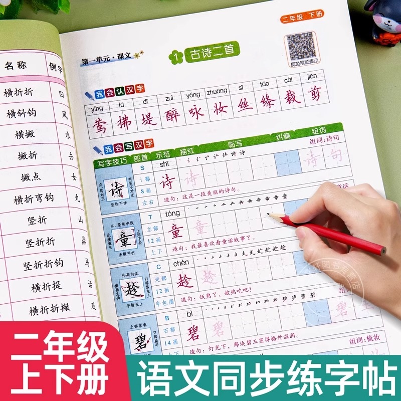 2年级上学期小学生专用生字帖练字教材每日一练写字课课练 二上语文字帖课本练字帖 二年级上册同步练字帖人教版 XHF 2025新版