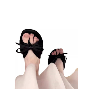 绝美夏季 女鞋 新款 外穿蝴蝶结凉鞋 子 配裙子平底一字拖缎面拖鞋 法式
