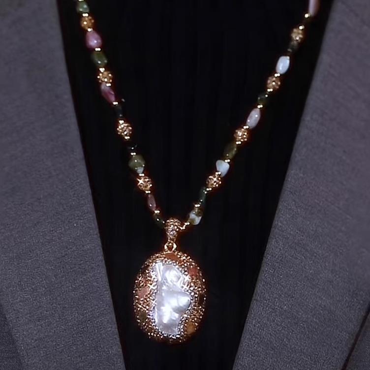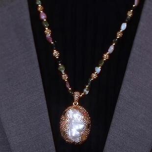 奥特莱斯一线品牌撤柜清仓折扣巴洛克珍珠碧玺天然淡水珍珠毛衣链