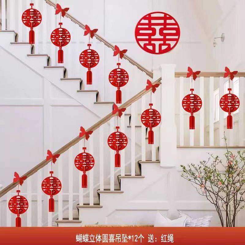 婚房布置套装 饰喜字挂饰结婚用品简约大方网红 男方楼梯扶手婚礼装