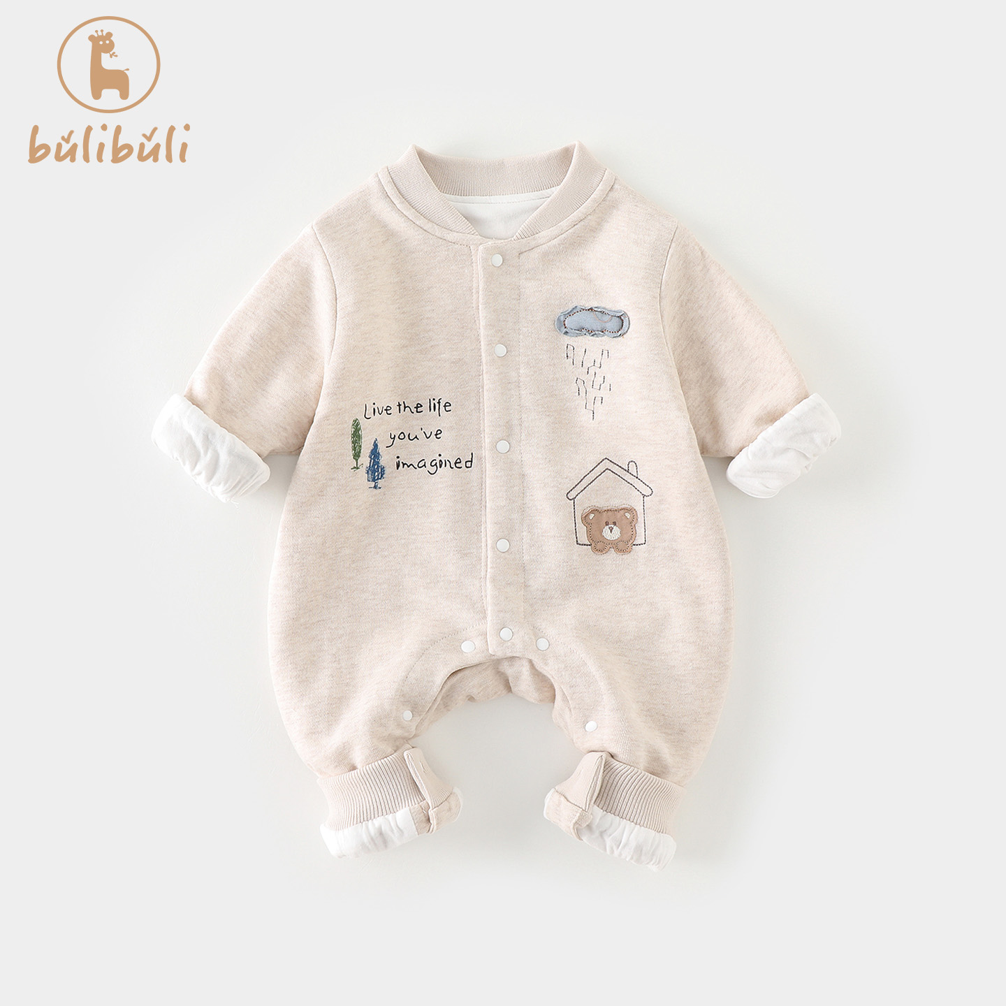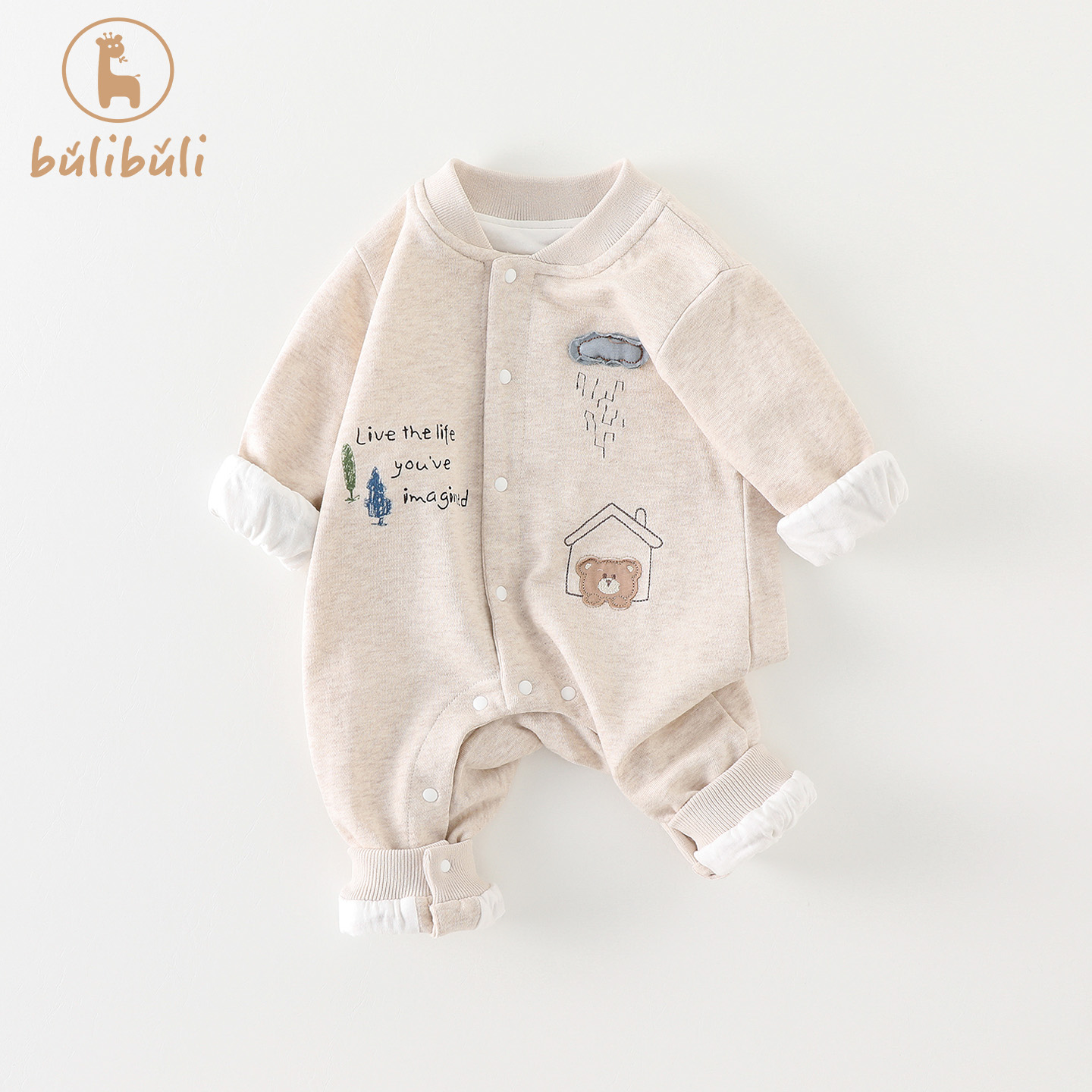 婴儿衣服秋装 爬服 双层外套男宝宝连体衣可爱洋气满月百天哈衣秋季