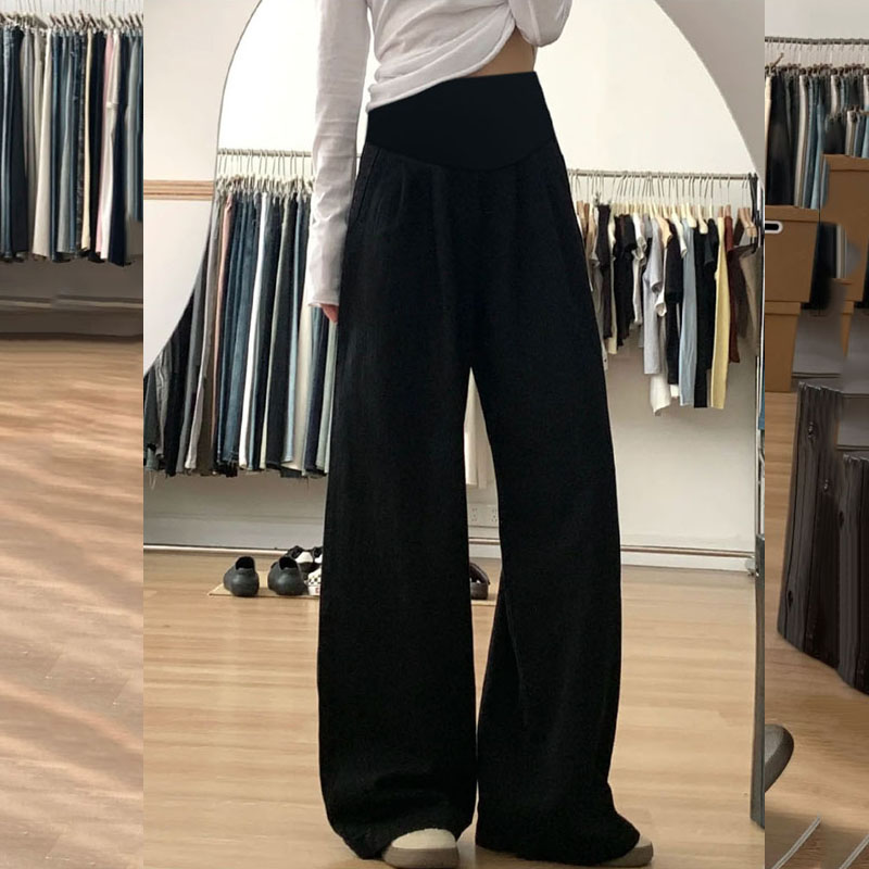 宽松白色高腰垂感老钱风直筒加长休闲裤 大码 子春秋外穿时尚 孕妇裤