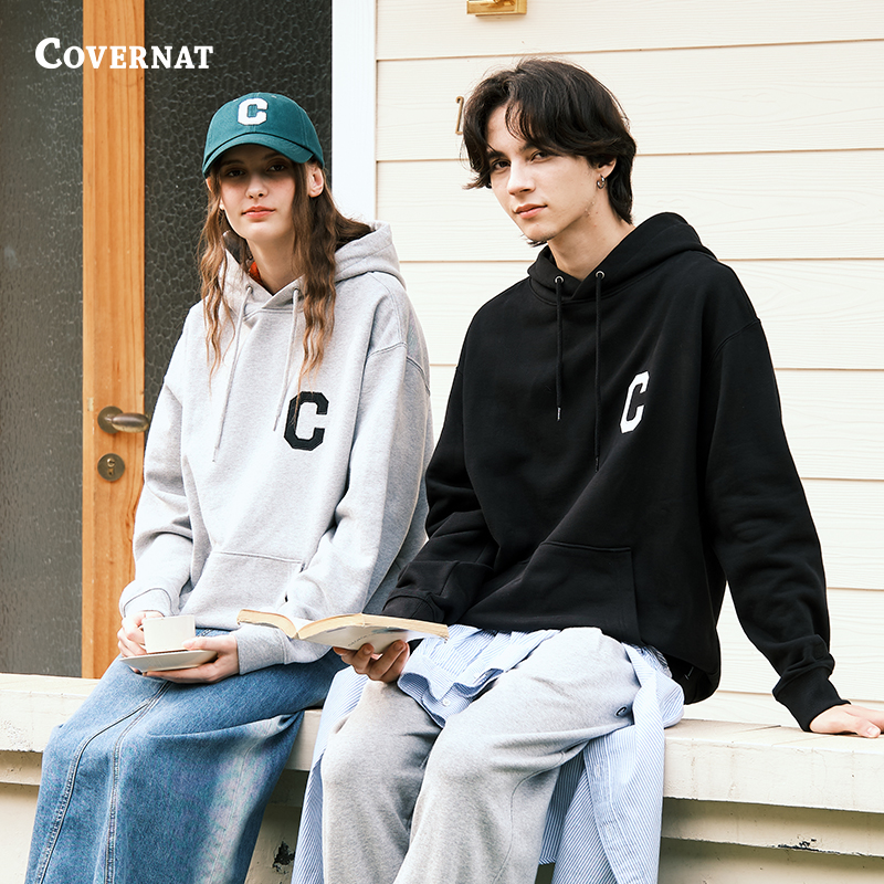 森马史努比系列连帽卫衣男复古学院印花情侣装 宽松休闲上衣 黑秋季